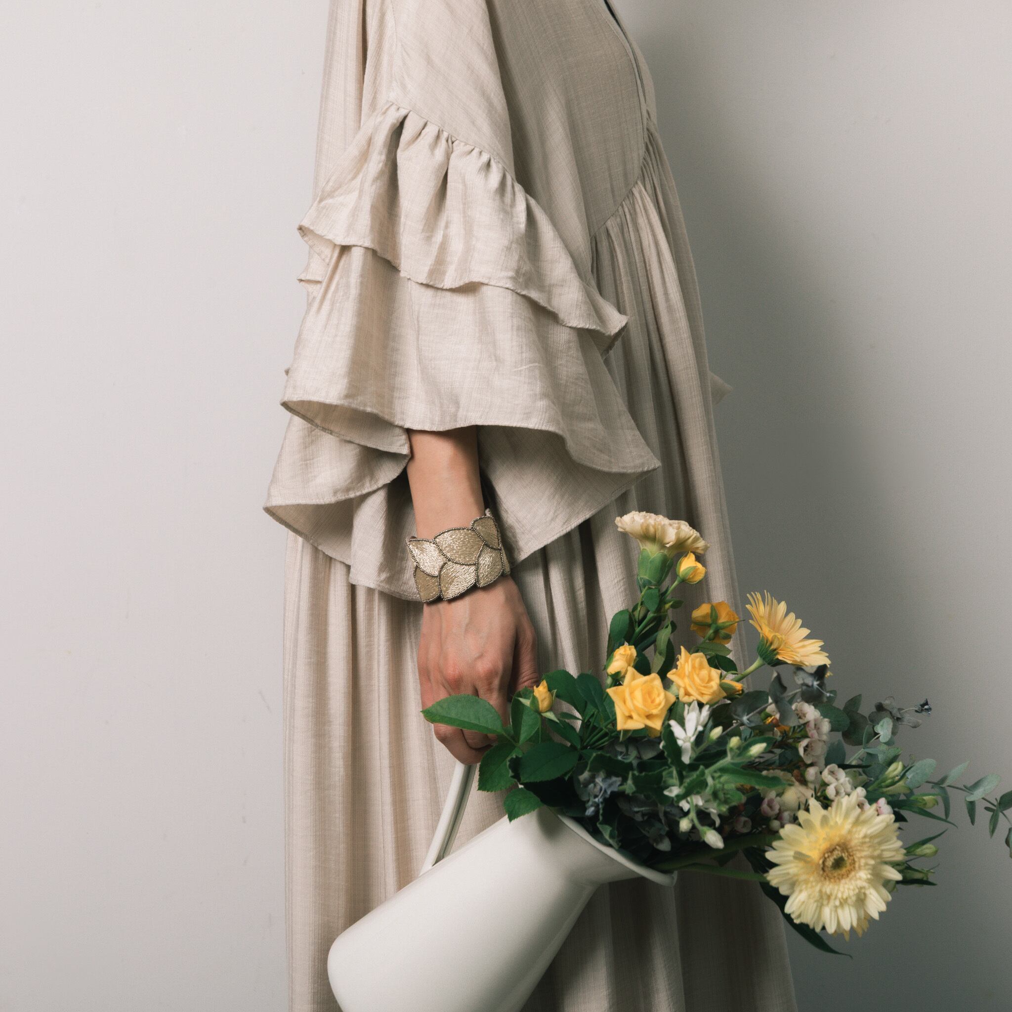 金属では表現できない、糸ならではのやわらかな光沢が、手もとに静かな存在感を添えます。