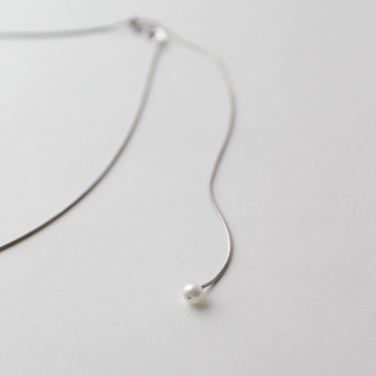 静かな存在感で、装いにそっと寄り添うネックレスです。
