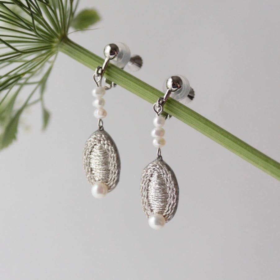 刺繍糸、淡水パール、樹脂