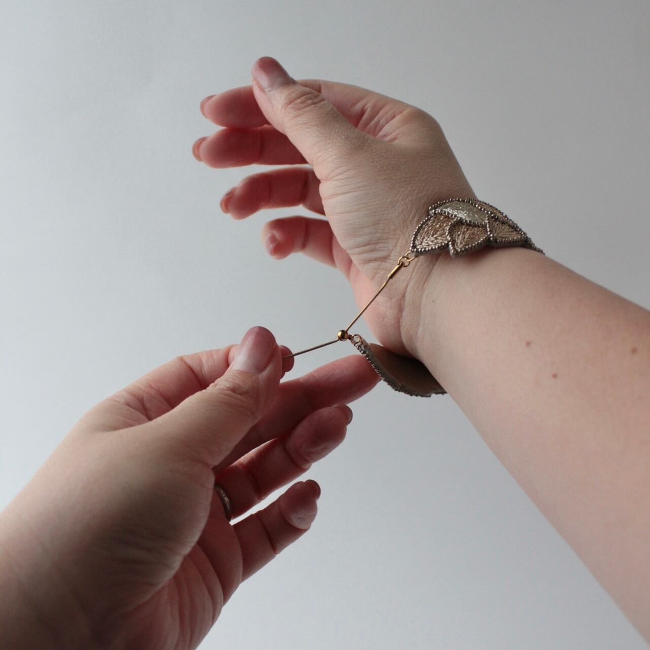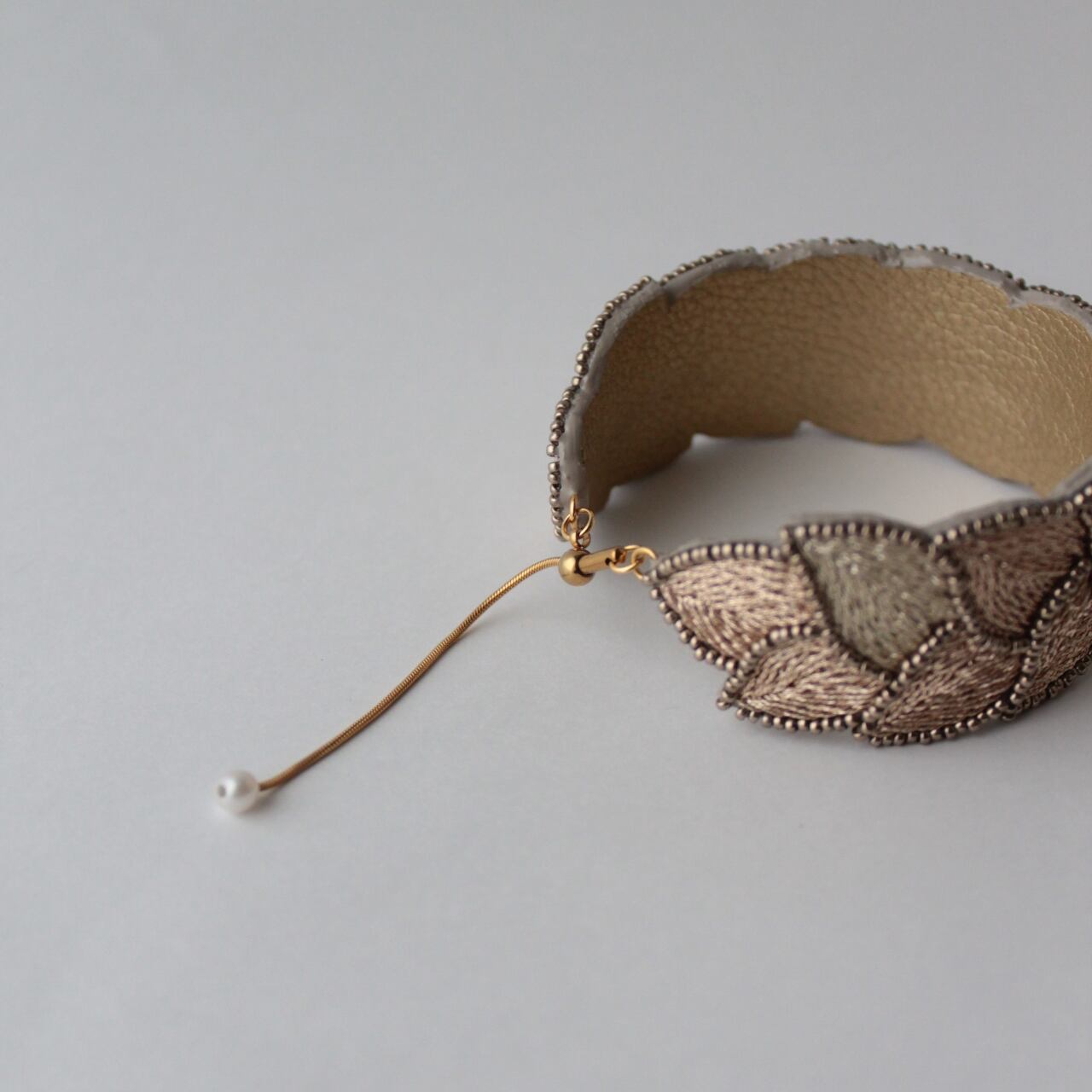 刺繍のアクセサリーはとても繊細で、引っ掛けや擦れ、水濡れに弱いので間違ってお洗濯されませんようお気をつけください。