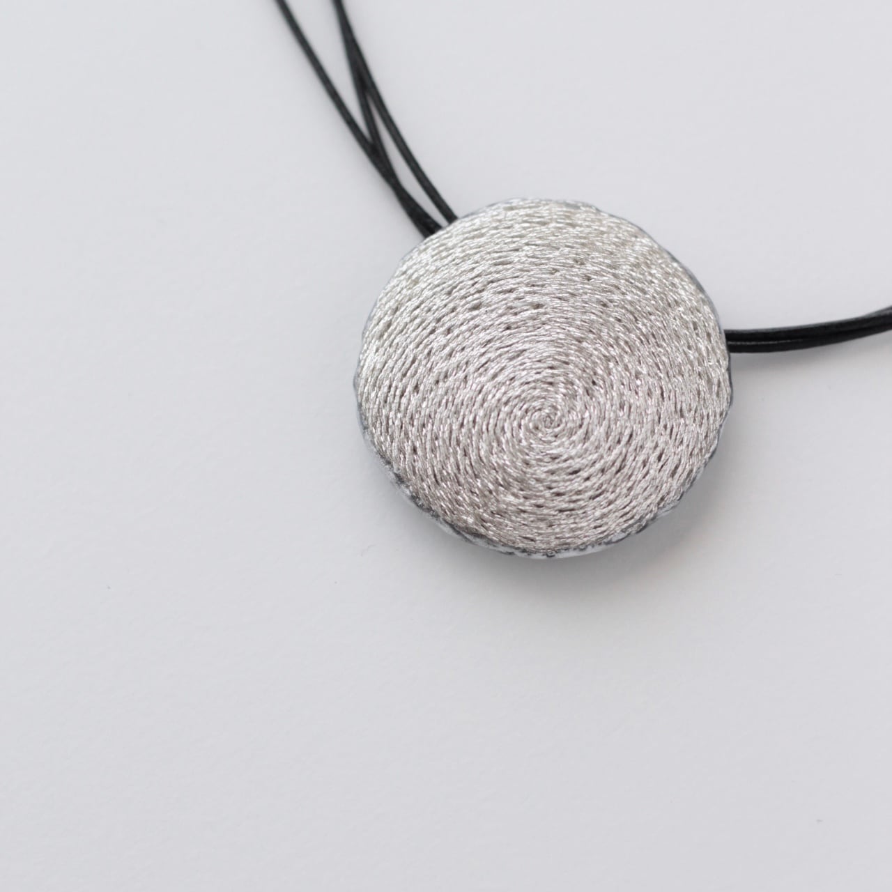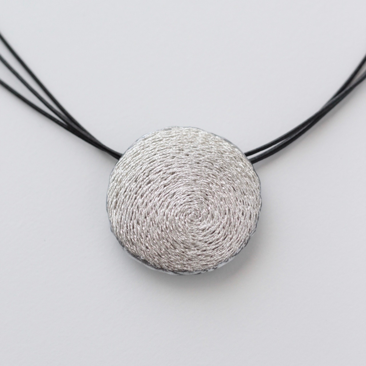 ペンダントの革紐は、長さを変えて束ねる事で、たわんだシルエットに。