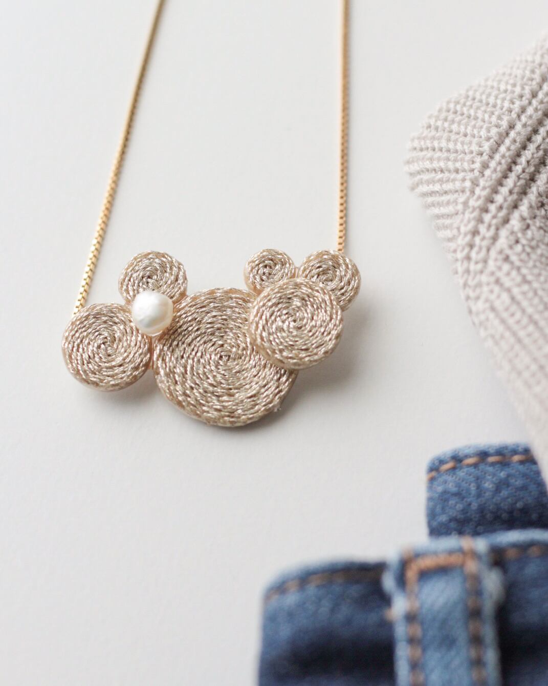 刺繍のアクセサリーはとても繊細で、引っ掛けや擦れ、水濡れに弱いので間違ってお洗濯されませんようお気をつけください。